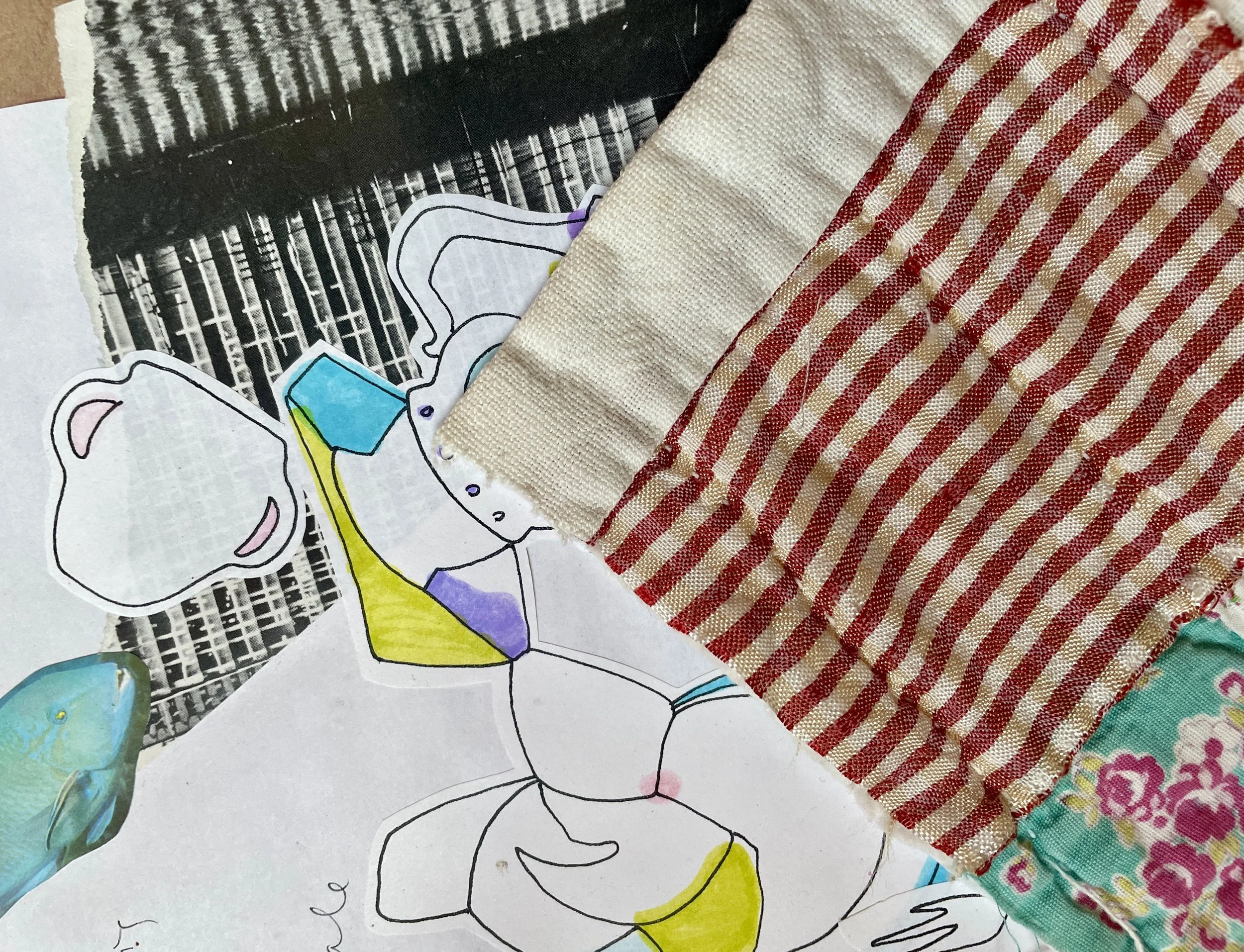 Her background as a professional dancer informs how she shapes experiences for others to get more in touch with their own way of moving, and influences her textile-based art studio practice. Working with fabric and thread is its own kind of choreography. The materials have an aliveness that want to be expressed through movement, play, cutting up and mending.