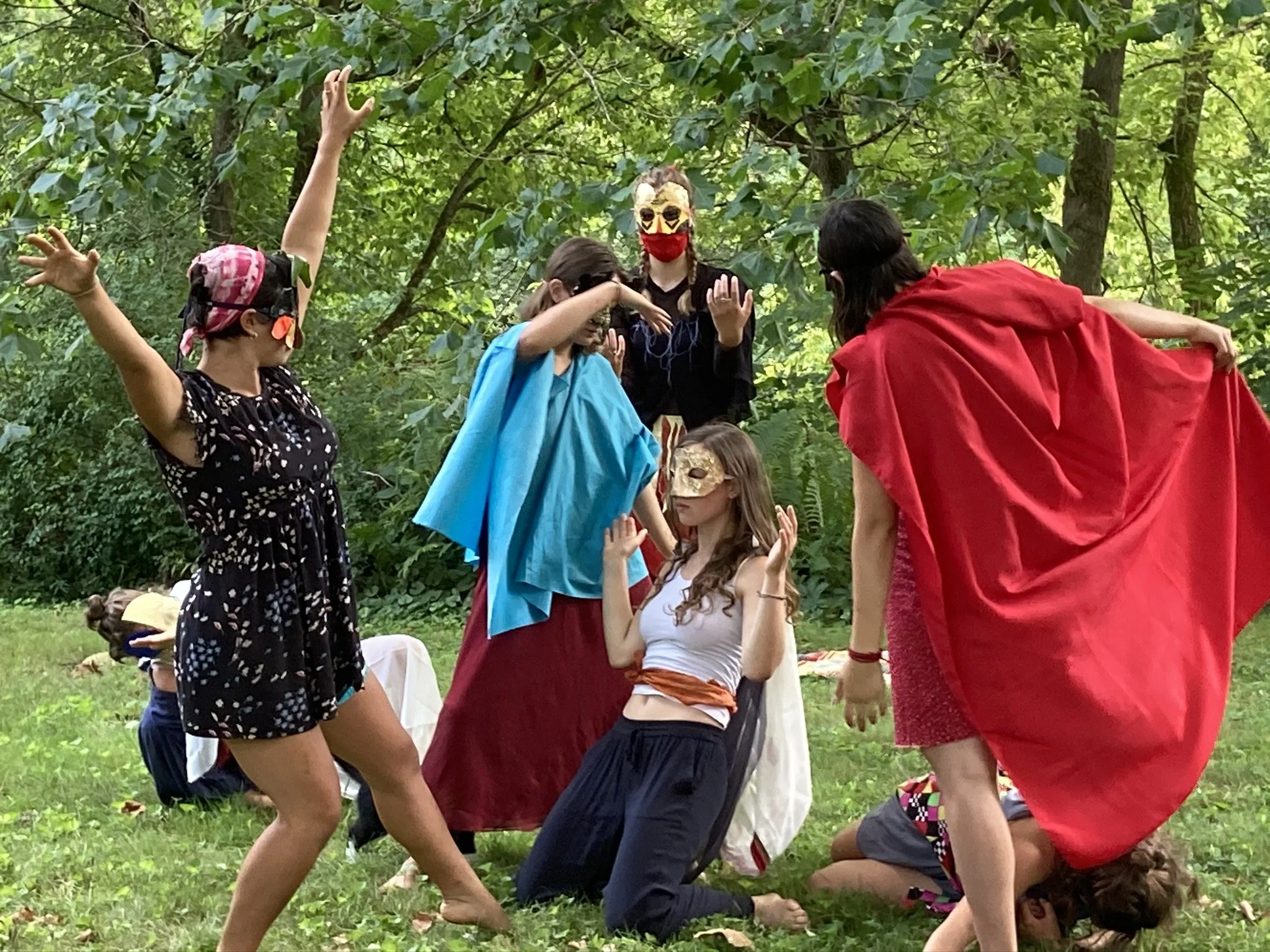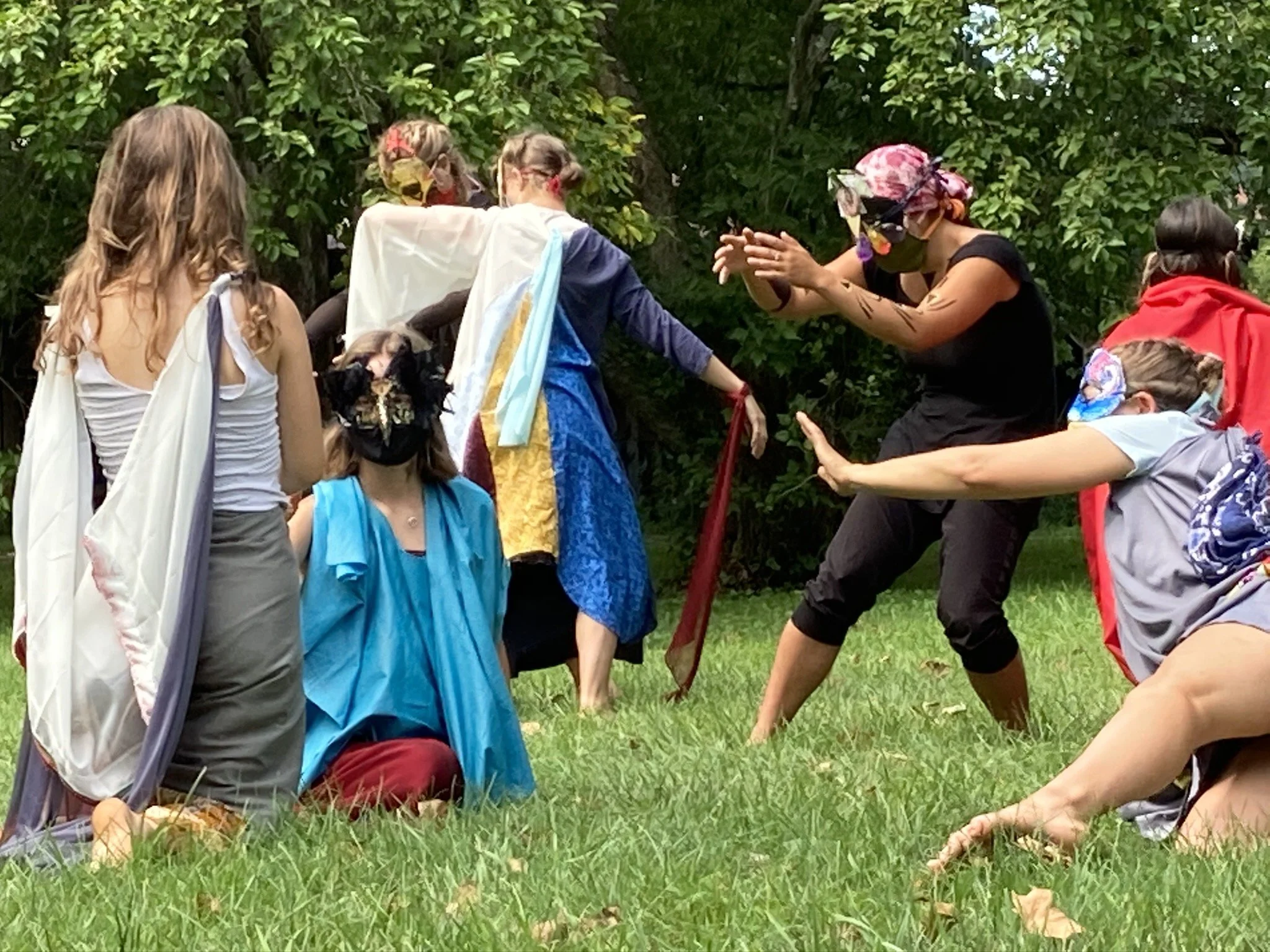 In the summer of 2020 a group of Middlebury College students of dance, writing and theater spent the summer dreaming, farming, living together. In these early Covid days, this project came as an attempt at reconnection, a weaving with the liminal, a mending of the forced isolation. It was an attempt at creating a container for the emergent future stories that were coming through these times of great upheaval, a re-imaging of the myths that shape culture and seed new directions.
